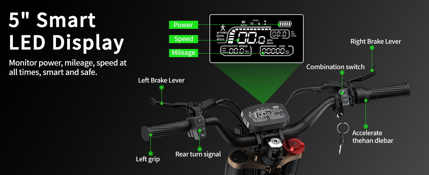 | LIGHTS | Front & Rear LED Light, Turn Signals, 2-in-1 Brake and Turn Signal LightAmbient Light(optional) |